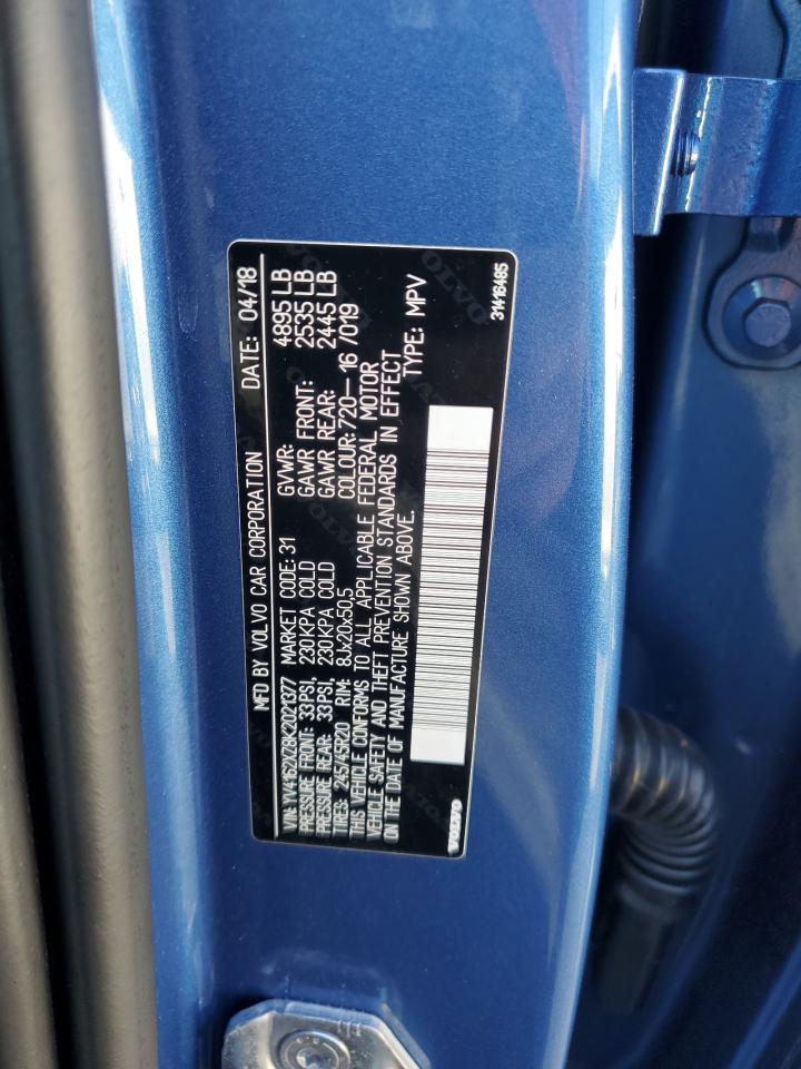 2019 VOLVO XC40 - YV4162XZ8K2021377, цвет - Синий, 2.0, Бензин, Полный привод из США