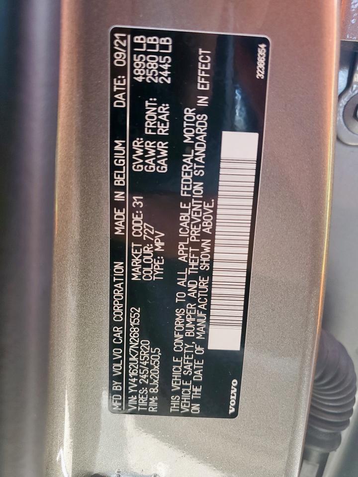 2022 VOLVO XC40 - YV4162UK7N2681552, цвет - Серый, 2.0, Бензин, Полный привод из США