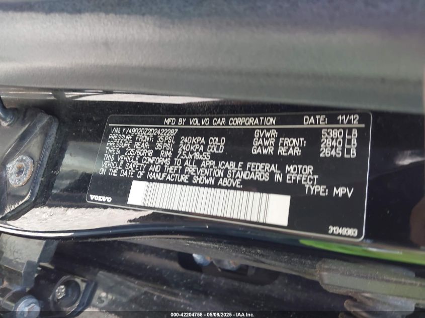 2013 VOLVO XC60 - YV4902DZ2D2422287, цвет - Черный, 3.0, Бензин, Полный привод из США