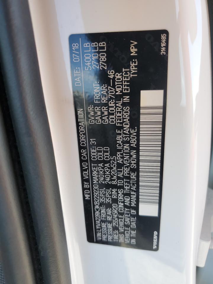 2019 VOLVO XC60 - LYVA22RK3KB229230, цвет - Белый, 2.0, Бензин, Полный привод из США