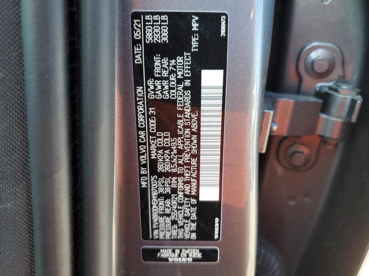 2021 VOLVO XC60 - YV4BR0DM5M1870075, цвет - Серый, 2.0, Гибрид, Полный привод из США