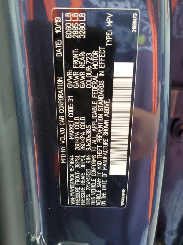 2020 VOLVO XC90 - YV4102PKXL1571644, цвет - Синий, 2.0, Бензин, Полный привод из США