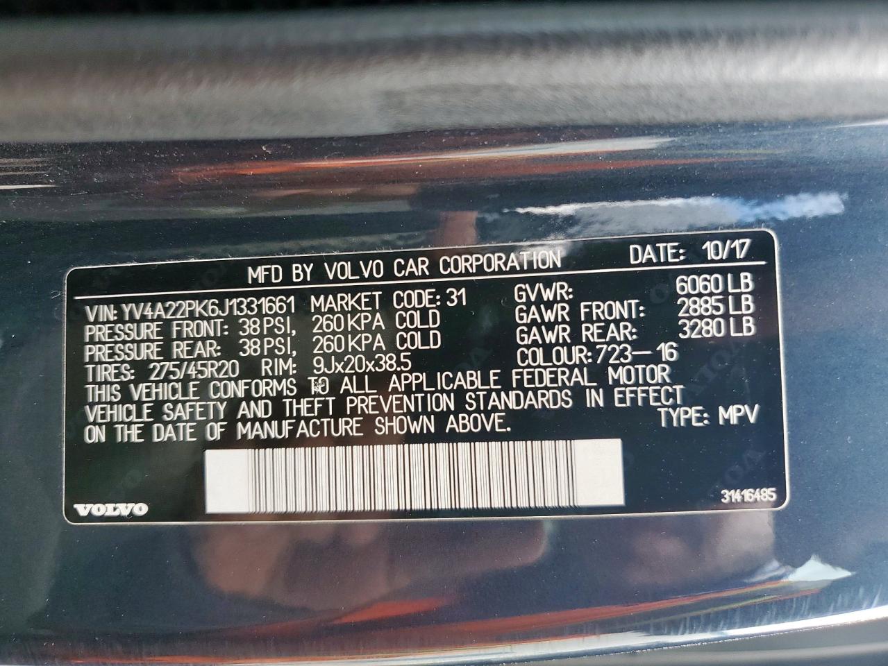 Цвет СинийЦилиндры 4Привод Полный приводVIN YV4A22PK6J1331661Состояние Заводится и едет (проверено)Повреждения По бокамДата аукциона 2025-10-10