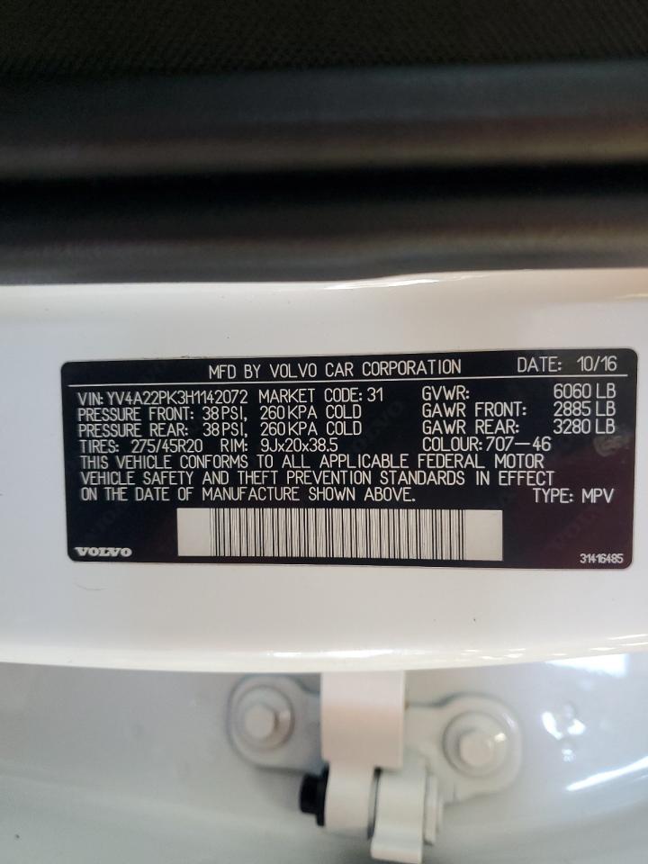 2017 VOLVO XC90 - YV4A22PK3H1142072, цвет - Белый, 2.0, Бензин, Полный привод из США
