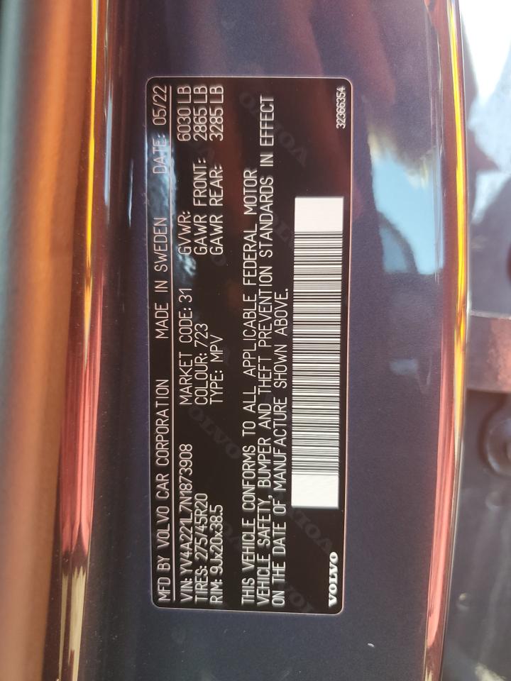 2022 VOLVO XC90 - YV4A221L7N1873908, цвет - Синий, 2.0, Бензин, Полный привод из США