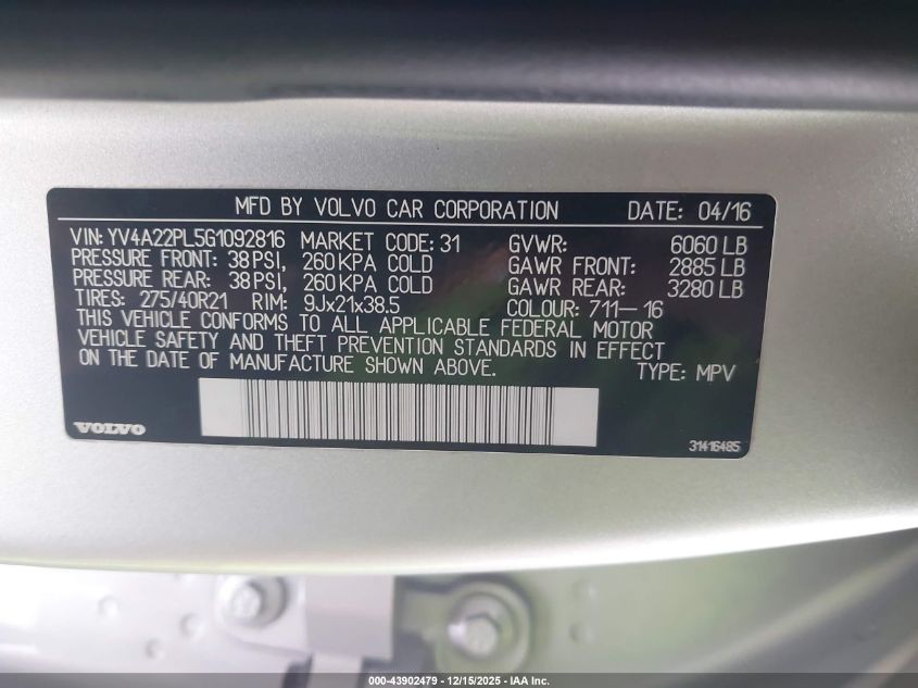 2016 VOLVO XC90 - YV4A22PL5G1092816, цвет - Серебряный, 2.0, Бензин, Полный привод из США