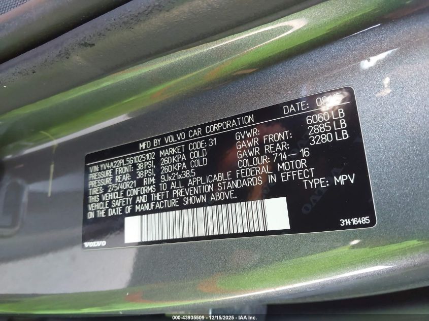 2016 VOLVO XC90 - YV4A22PL5G1025102, цвет - Серый, 2.0, Бензин, Полный привод из США