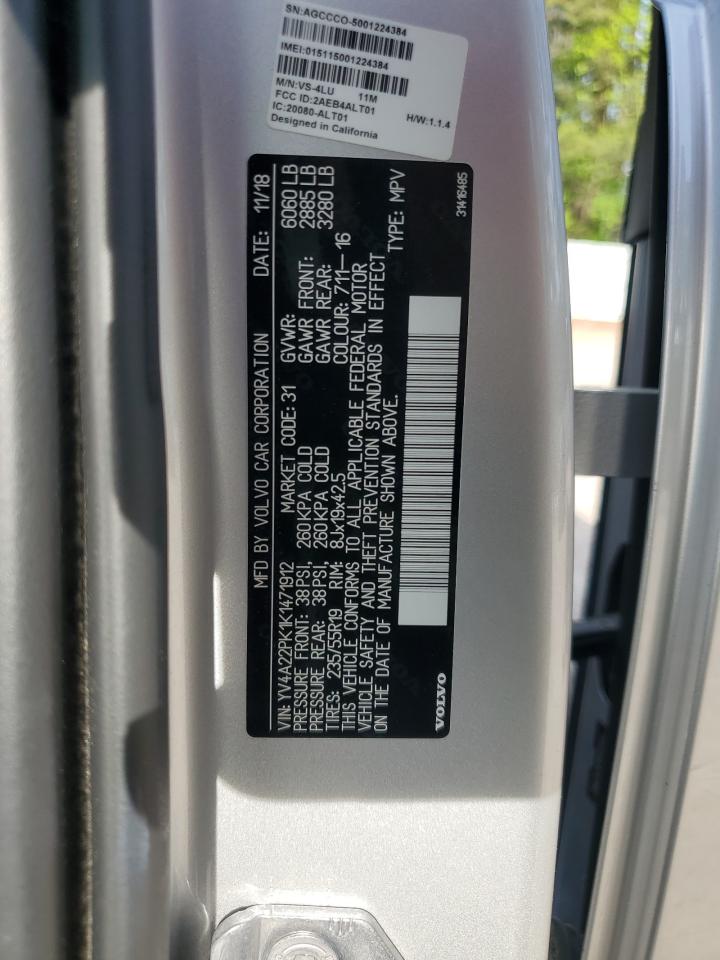 2019 VOLVO XC90 - YV4A22PK1K1471912, цвет - Серебряный, 2.0, Бензин, Полный привод из США
