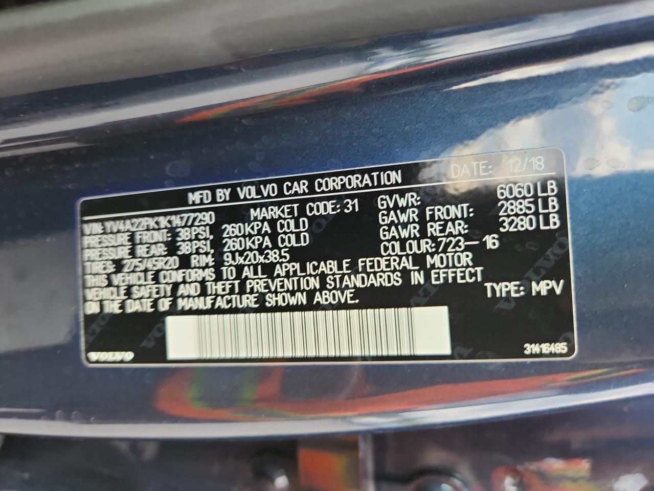 2019 VOLVO XC90 - YV4A22PK1K1477290, цвет - Синий, 2.0, Бензин, Полный привод из США