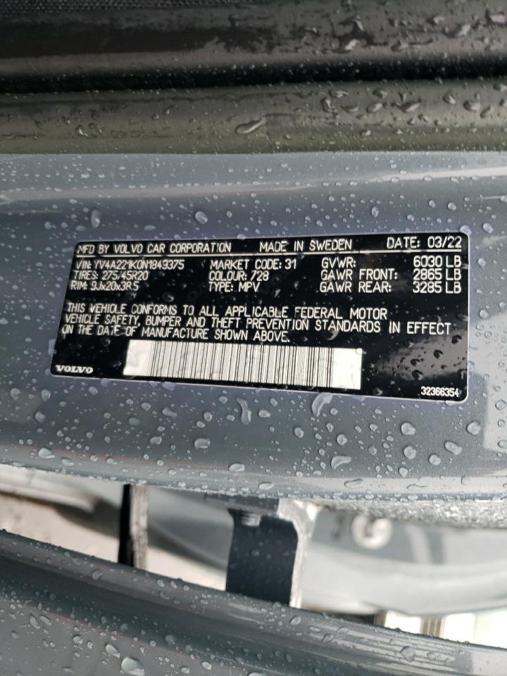 2022 VOLVO XC90 - YV4A221K0N1849375, цвет - Серый, 2.0, Бензин, Полный привод из США