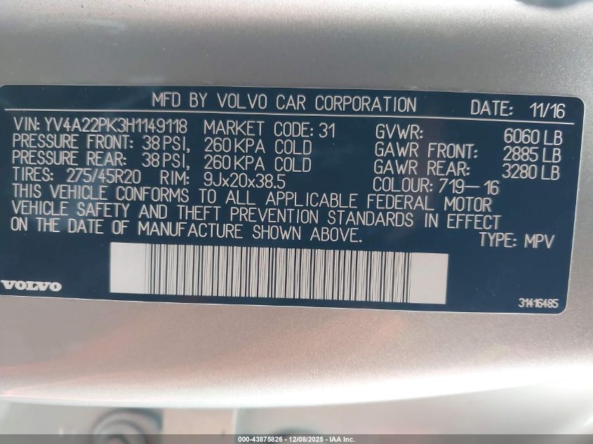 2017 VOLVO XC90 - YV4A22PK3H1149118, цвет - Загар, 2.0, Бензин, Полный привод из США