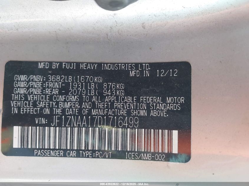 2013 SCION FR-S - JF1ZNAA17D1716499, колір - Срібний, 2.0, Бензин, Задній привід із США