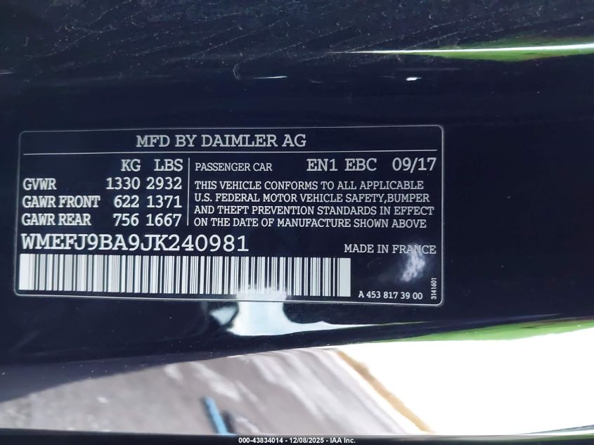 Колір КоричневийПривід Задній привідVIN WMEFJ9BA9JK240981Стан НевідомоУшкодження Права сторона