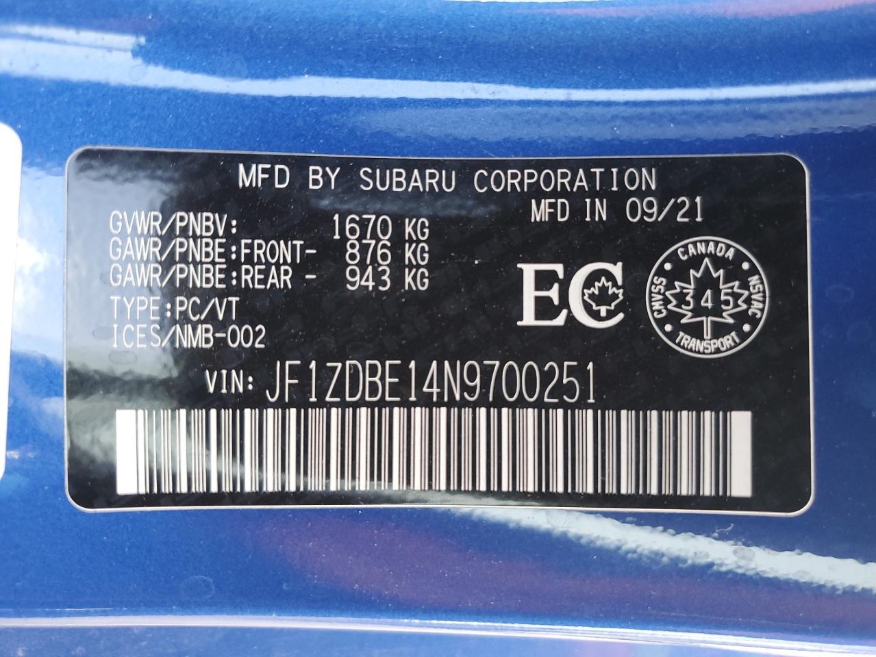 2022 SUBARU BRZ - JF1ZDBE14N9700251, колір - Синій, 2.4, Бензин, Задній привід із США