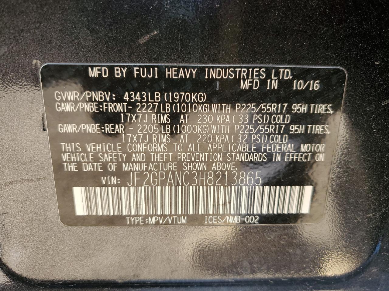 Колір Деревне вугілляЦиліндри 4Привід Повний привідVIN JF2GPANC3H8213865Стан НевідомоУшкодження Передня або задняДата аукціона 2025-10-09