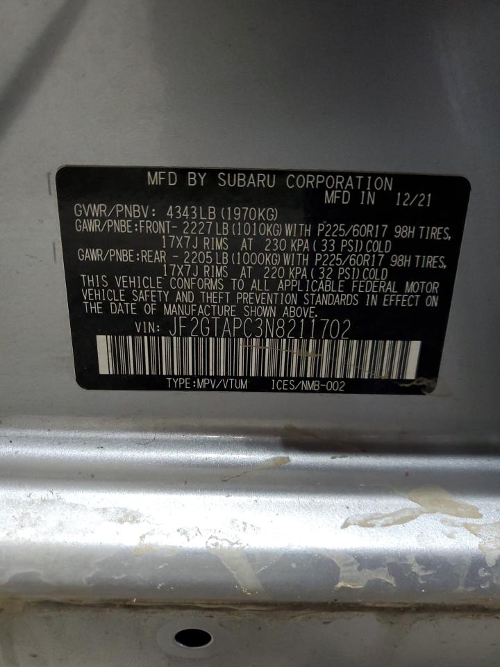 2022 SUBARU CROSSTREK - JF2GTAPC3N8211702, колір - Срібний, 2.0, Бензин, Повний привід із США