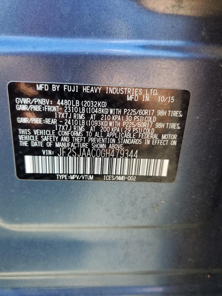 2016 SUBARU FORESTER - JF2SJAAC0GH479344, колір - Синій, 2.5, Бензин, Повний привід із США