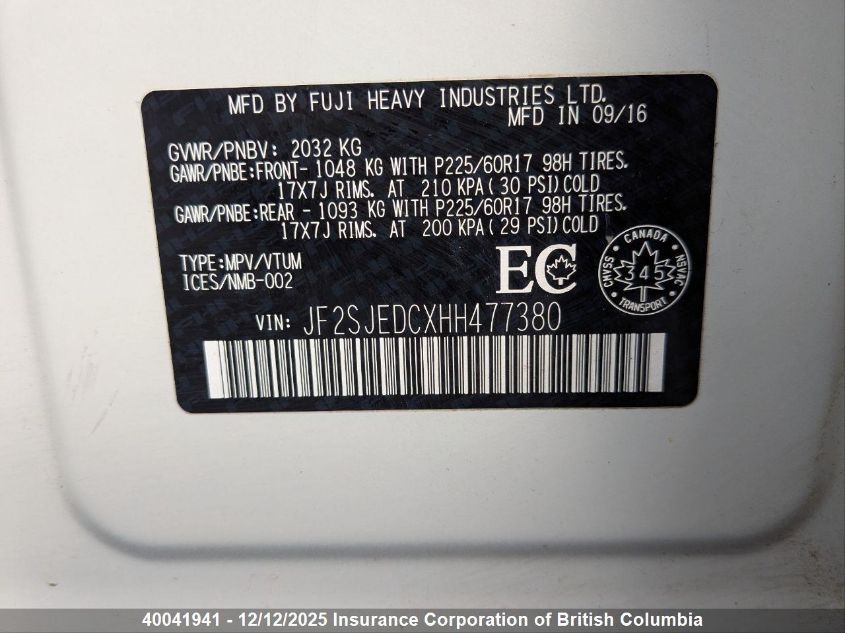 2017 SUBARU FORESTER 2.5I LIMITED