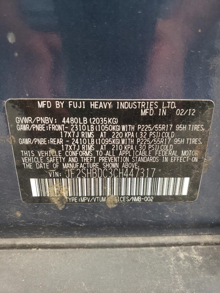 2012 SUBARU FORESTER - JF2SHBDC3CH447317, колір - Синій, 2.5, Бензин, Повний привід із США