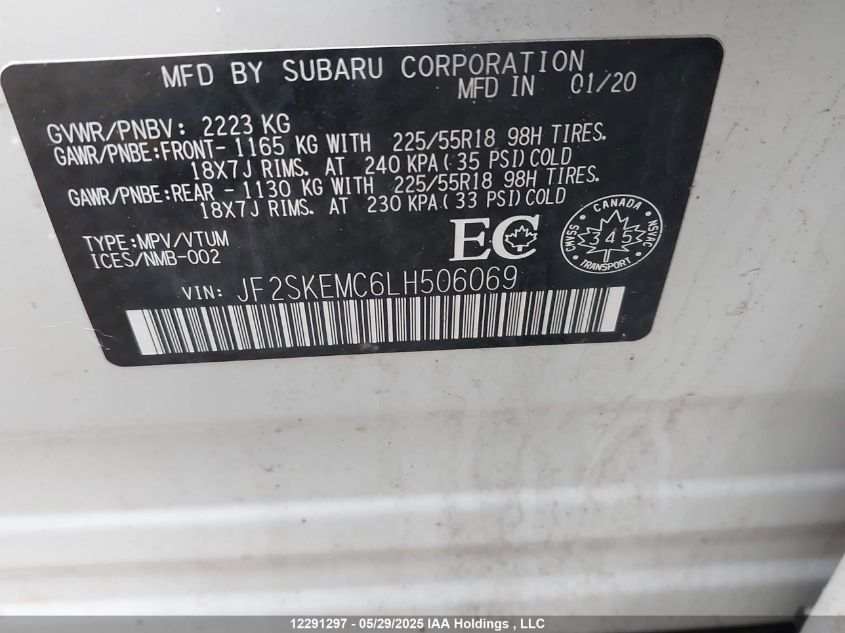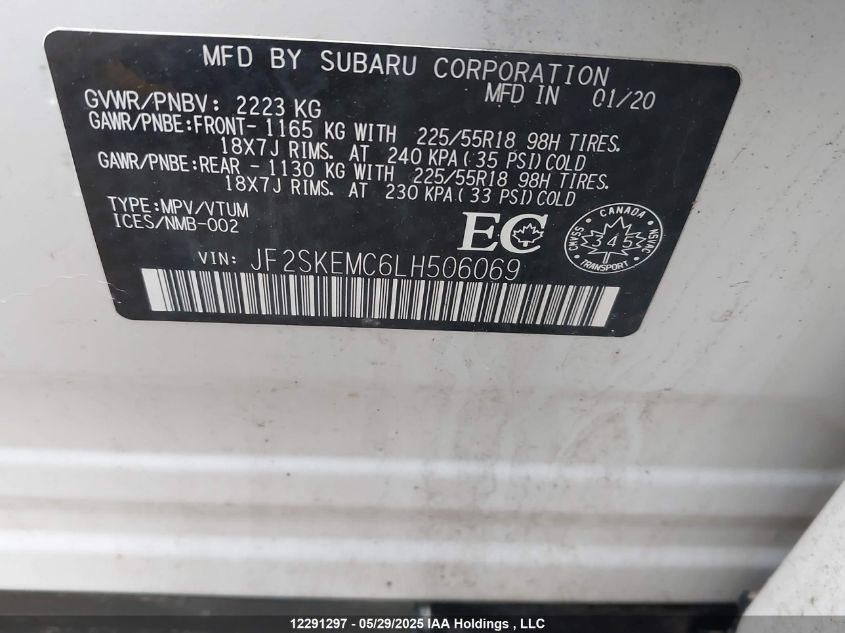 2020 SUBARU FORESTER - JF2SKEMC6LH506069, колір - Білий, , Бензин, Повний привід із США