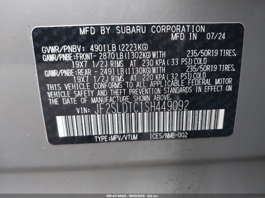 2025 SUBARU FORESTER - JF2SLDTC1SH449092, колір - Сірий, 2.5, Бензин, Повний привід із США