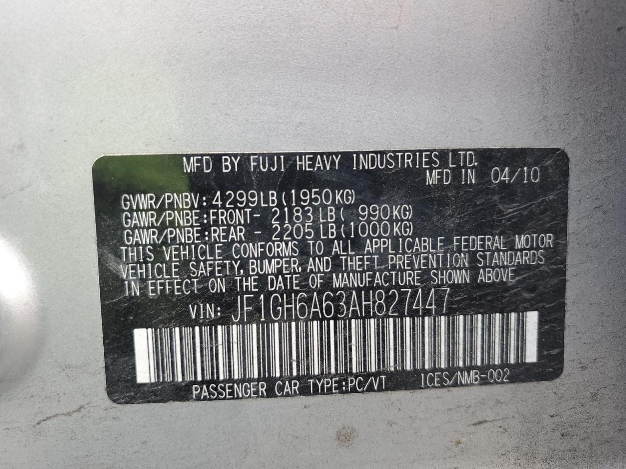 2010 SUBARU IMPREZA - JF1GH6A63AH827447, колір - Срібний, 2.5, Бензин, Повний привід із США