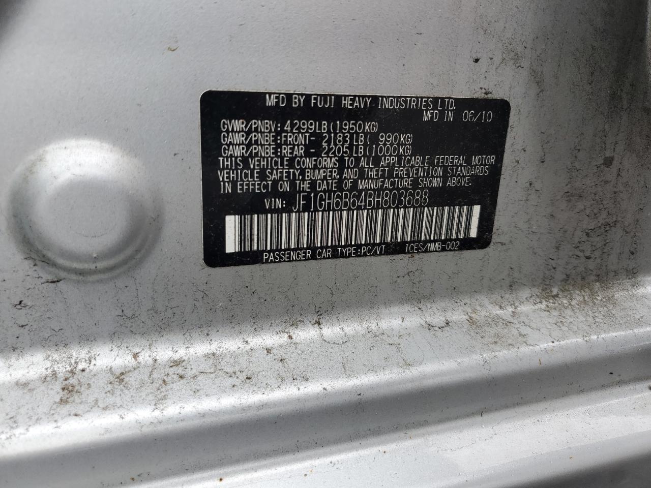 Колір СрібнийЦиліндри 4Привід Повний привідVIN JF1GH6B64BH803688Стан НевідомоУшкодження Передня або задняДата аукціона 2025-10-08
