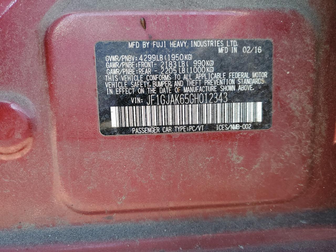 2016 SUBARU IMPREZA - JF1GJAK65GH012343, колір - Червоний, 2.0, Бензин, Повний привід із США