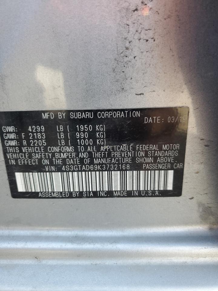 2019 SUBARU IMPREZA - 4S3GTAD69K3732168, колір - Срібний, 2.0, Бензин, Повний привід із США