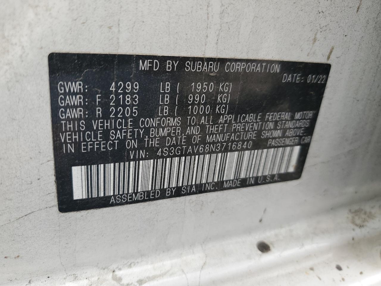 2022 SUBARU IMPREZA - 4S3GTAV68N3716840, колір - Білий, 2.0, Бензин, Повний привід із США