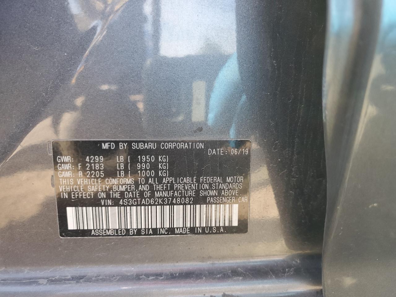 2019 SUBARU IMPREZA - 4S3GTAD62K3748082, колір - Сірий, 2.0, Бензин, Повний привід із США