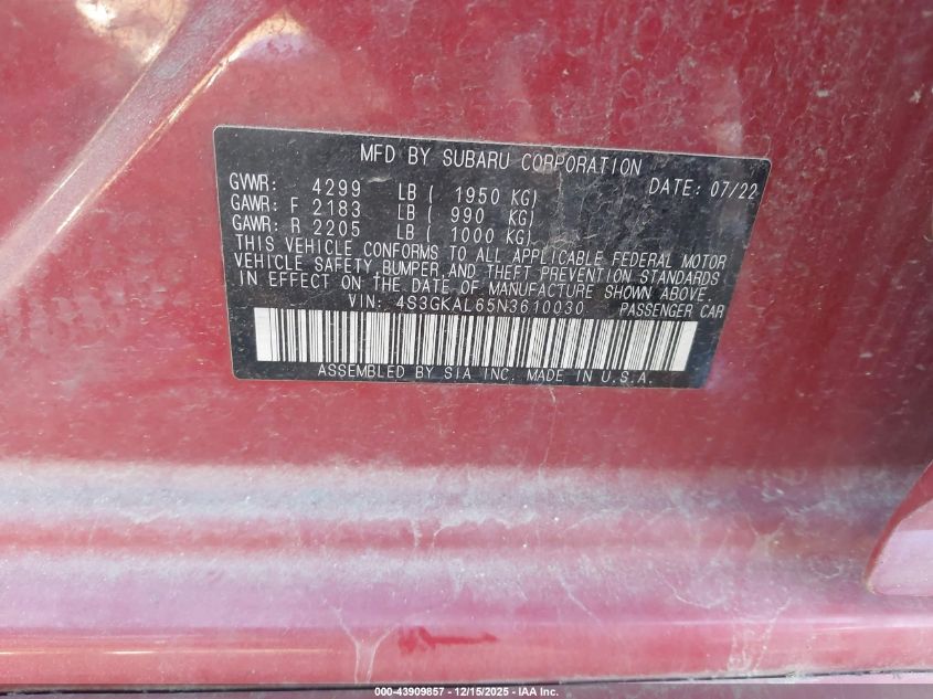 2022 SUBARU IMPREZA - 4S3GKAL65N3610030, колір - , 2.0, Бензин, Повний привід із США