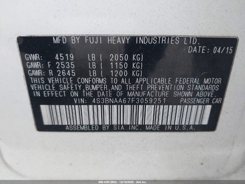 Колір БілийЦиліндри 4Привід Повний привідVIN 4S3BNAA67F3059251Стан Заводиться та їде (перевірено)Ушкодження Передня або задня