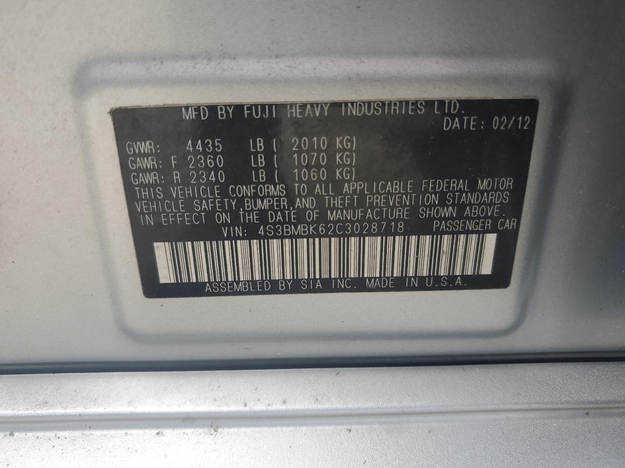 2012 SUBARU LEGACY - 4S3BMBK62C3028718, колір - Срібний, 2.5, Бензин, Повний привід із США
