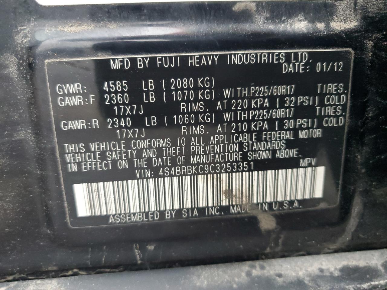 2012 SUBARU LEGACY - 4S4BRBKC9C3253351, колір - Чорний, 2.5, Бензин, Повний привід із США
