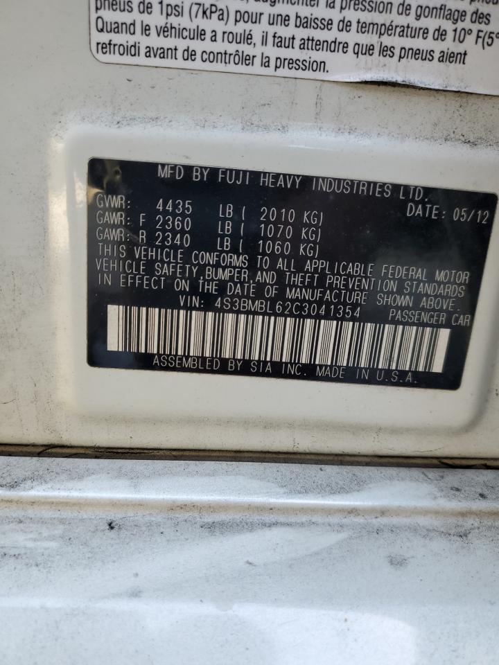 2012 SUBARU LEGACY - 4S3BMBL62C3041354, колір - Білий, 2.5, Бензин, Повний привід із США