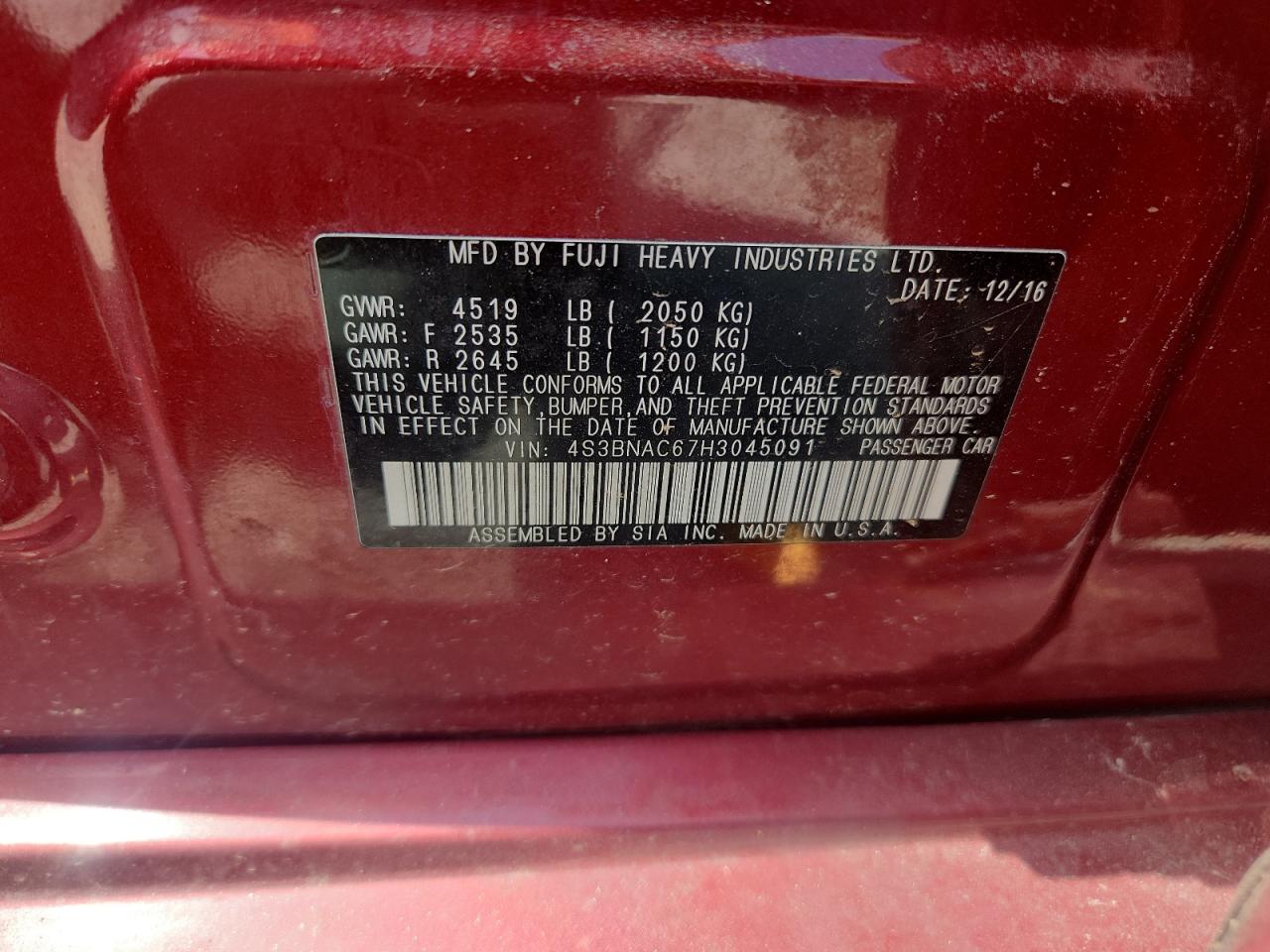Колір БургундіяЦиліндри 4Привід Повний привідVIN 4S3BNAC67H3045091Стан Заводиться та їде (перевірено)Ушкодження Незначні