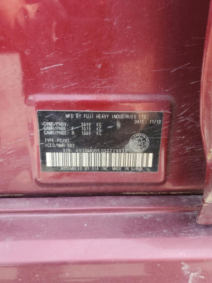 2011 SUBARU LEGACY - 4S3BMGB63B3229930, колір - Бургундія, 2.5, Бензин, Повний привід із США