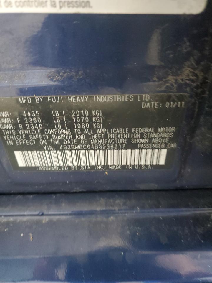 2011 SUBARU LEGACY - 4S3BMBC64B3238217, колір - Синій, 2.5, Бензин, Повний привід із США