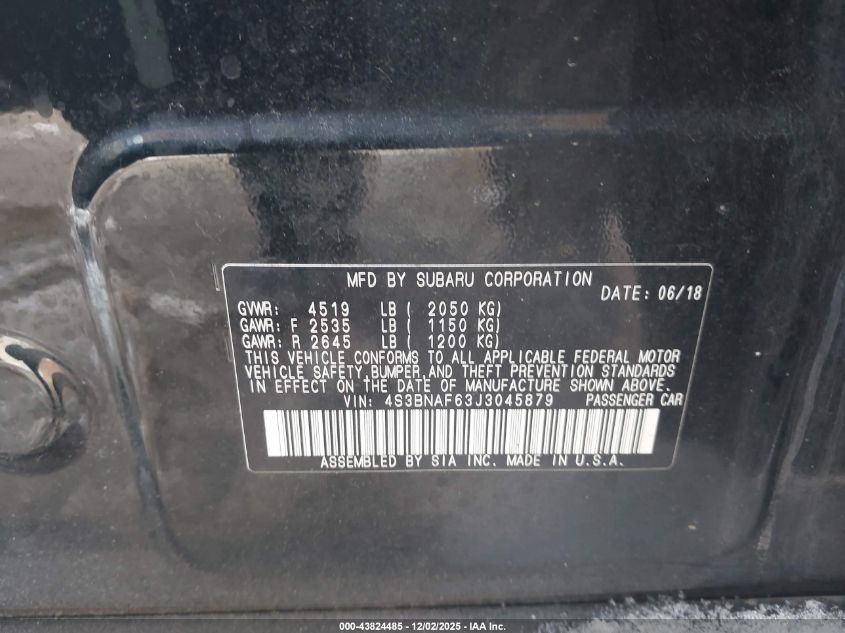 2018 SUBARU LEGACY - 4S3BNAF63J3045879, колір - Чорний, 2.5, Бензин, Повний привід із США