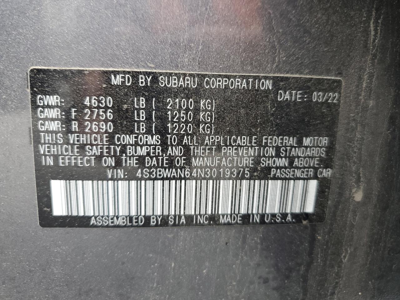2022 SUBARU LEGACY - 4S3BWAN64N3019375, колір - Сірий, 2.5, Бензин, Повний привід із США