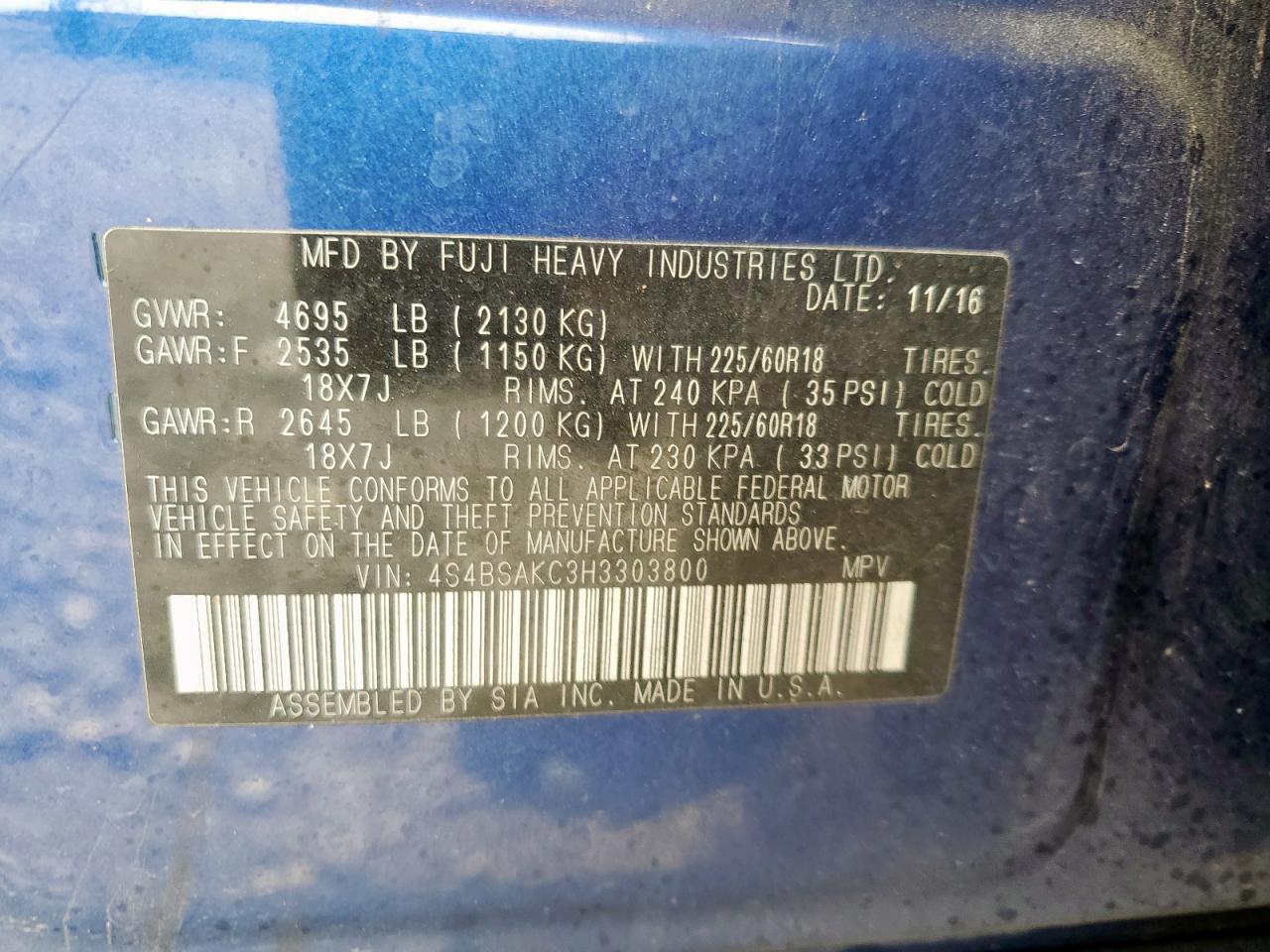 2017 SUBARU OUTBACK - 4S4BSAKC3H3303800, колір - Синій, 2.5, Бензин, Повний привід із США