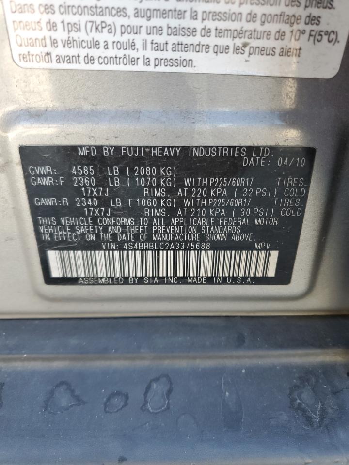 2010 SUBARU OUTBACK - 4S4BRBLC2A3375688, колір - Срібний, 2.5, Бензин, Повний привід із США