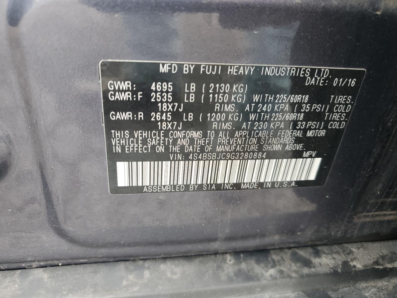 Колір СинійЦиліндри 4Привід Повний привідVIN 4S4BSBJC9G3280884Стан НевідомоУшкодження Передня або задня
