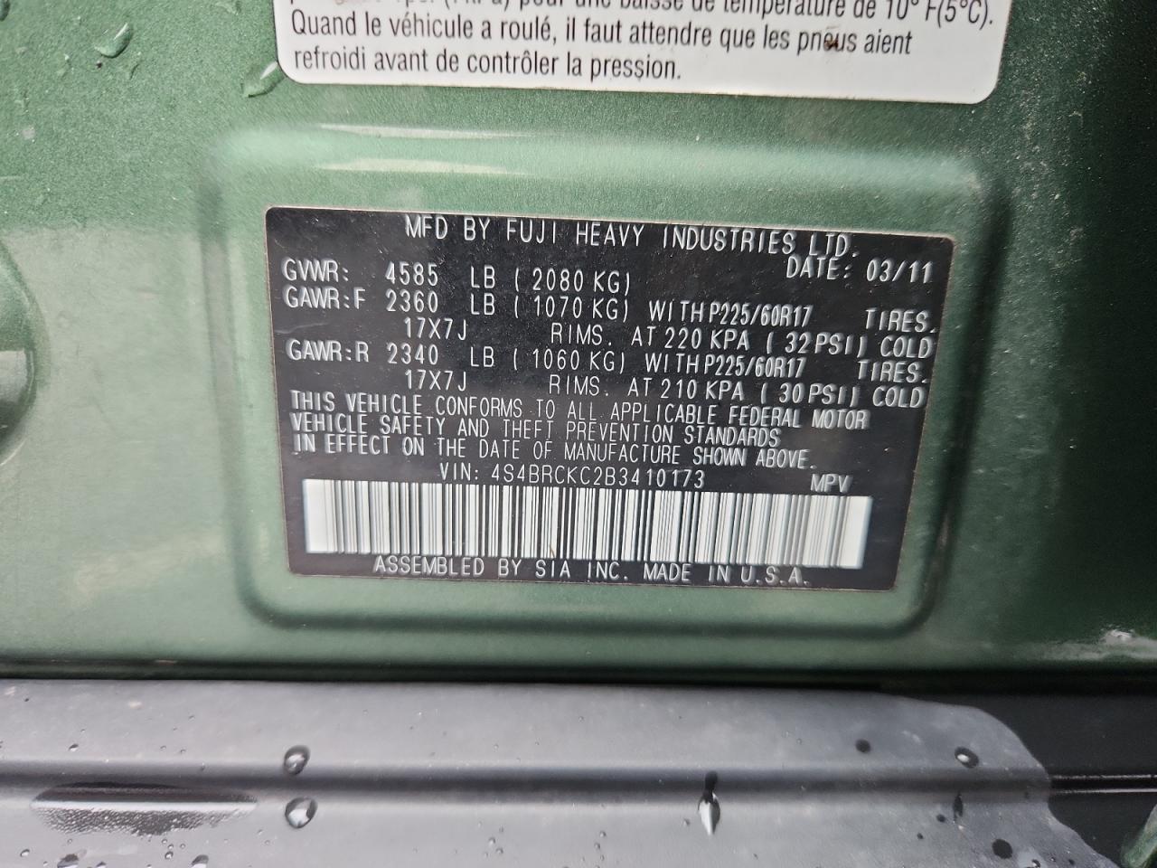 2011 SUBARU OUTBACK - 4S4BRCKC2B3410173, колір - Зелений, 2.5, Бензин, Повний привід із США