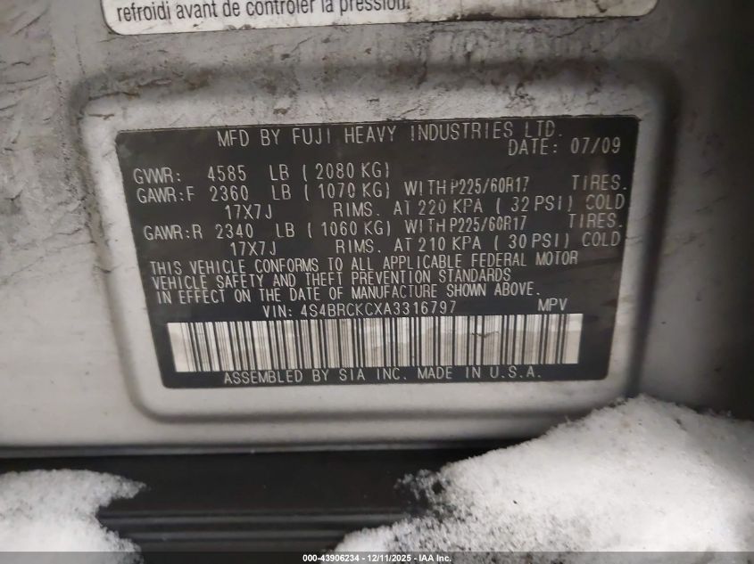2010 SUBARU OUTBACK 3.6R LIMITED