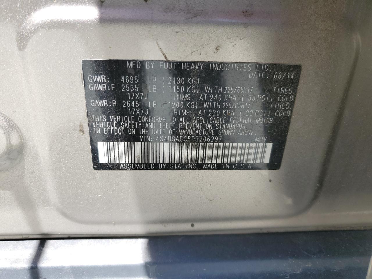 Колір ЗолотийЦиліндри 4Привід Повний привідVIN 4S4BSAEC5F3206297Стан Заводиться та їде (перевірено)Ушкодження ЗадняДата аукціона 2025-10-08