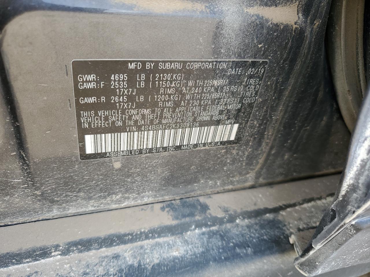 2019 SUBARU OUTBACK - 4S4BSAFC2K3309136, колір - Сірий, 2.5, Бензин, Повний привід із США