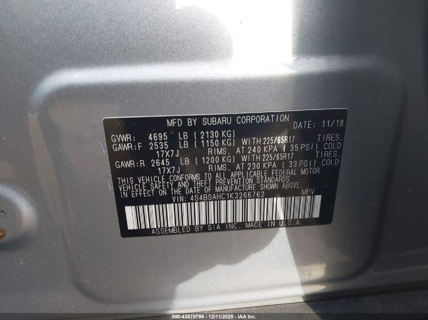 2019 SUBARU OUTBACK 2.5I PREMIUM