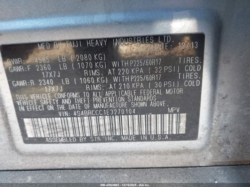2014 SUBARU OUTBACK 2.5I LIMITED
